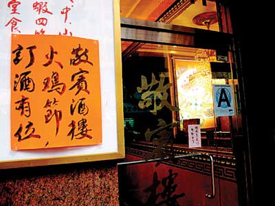 華埠東百老匯的敬賓酒樓雖然近日才貼出火雞節(jié)宴席預(yù)訂告示,但業(yè)者介紹預(yù)訂活動(dòng)早在一年前便開(kāi)始,宴席也已被訂走大半。