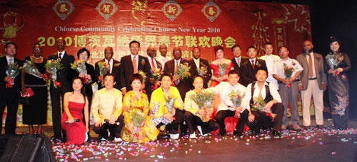 中新網2月20日電 據非洲《華僑周報》報道,2月13日晚,經過緊張的籌備,博茨瓦納僑界2010春晚在博茨瓦納哈博羅內大棕櫚國際會議中心(GICC)圓滿成功舉行。中國駐博茨瓦納大使劉煥興、政務參贊茍皓東夫婦、北京市人大副主任、中國僑聯副主席、北京市僑聯主席李昭玲及在博華僑華人約850人同聚一堂,共慶中華民族的傳統佳節—-虎年春節。晚會以規格最高、參與人數最多創下了歷屆博茨瓦納僑界春晚之最。