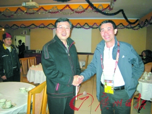“你好!沒有想到我們又見面了!弊蛱焱砩,記者邂逅到中國駐約翰內(nèi)斯堡領(lǐng)事館房利總領(lǐng)事,記者數(shù)月前來南非作賽前采訪時,房總領(lǐng)事就曾經(jīng)親切接見過本報記者,并與記者共進晚餐。這次約堡再度重逢,相當熱情。