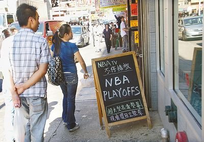 NBA季后賽一個月以來,特別是在晚餐時間,華埠許多中餐館在晚餐時間將電視畫面固定在體育頻道,有的大酒樓也不例外。顧客在餐廳停留的時間增加了,消費金額也會有所增多,業者既賺人氣,又有買氣。