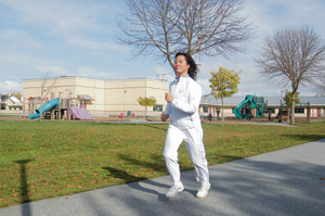 岑潔儒說,7月底接到通知時,雖還沒最后確定路程和地點,但她已開始自我訓練。報名表上提到,跑步路程在200米到400米之間,但現在溫冬奧籌委會確認她傳火炬路程是300米,火炬長90厘米,重量3.5磅。雖然VANOC指明傳遞方式除了慢跑,也可以用走或快步走方式,一切以火炬手的體能條件做自我考慮,但岑潔儒堅持跑完全程。她笑著說,還沒老到要用“走路”方式,不過,她最大的擔心是火炬重量。