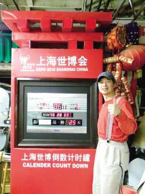 黃漢龍介紹他制作的上海世博會倒計時鐘,將擺放在舊金山灣區佛利蒙永和超市前,讓灣區僑胞也能一起為上海世博倒計時并迎接上海世博會的到來。