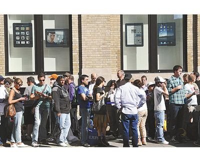 該報記者21日下午到蘋果蘇荷分店觀察,一位即將前往香港探視友人的陳先生排隊很久,當(dāng)好不容易才輪到時,他向店員說要購買兩臺iPad,店員馬上問他“你買這做什么?”陳先生據(jù)實回答“到香港送友人”。不料店員卻回以“iPad只能在美國境內(nèi)使用,到香港就不能用”為由拒出售,對于iPad性能不太了解的陳先生接受店員說法,空手走出店門,還安慰自己“反正到香港不能用,沒買成,正好省一筆錢”。