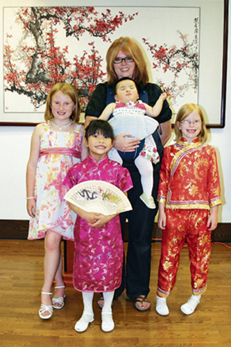 參加晚會的眾多家庭中,一位女士一直在胸前抱著一個中國女孩,無論觀看表演還是吃飯,從沒有把女孩放下過。她就是康肯(Lisa Konkin)。康肯夫婦已經有6個孩子,年長的4個已經長大成人,還有兩個女兒Caroline和Madeline。幾年前,康肯夫婦決定從中國收養孩子,經過了近3年的漫長等待后,才抱起現年6歲的Hanna-Lin。