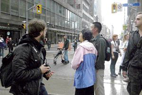 華人青年不顧危險,在多倫多市街頭湊熱鬧看示威(加拿大《星島日報》)