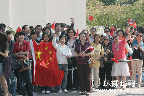 中新網9月1日電 據加拿大《環球華報》報道,中國全國人大常委會委員長吳邦國一行在出訪古巴、巴哈馬、美國途中,在溫哥華做短暫停留。當地時間8月31日上午,溫哥華幾百名華僑華人以及中國留學生在吳邦國一行下榻的酒店門前夾道歡迎。