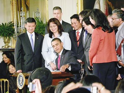 中新網10月16日電 據美國《世界日報》報道,美國百余位亞太裔14日齊聚白宮,參加恢復白宮總統亞太裔顧問委員會及白宮亞太裔計劃的儀式。奧巴馬總統在白宮東廳,宣布華裔聯邦商務部長駱家輝(Gary Locke),及教育部長唐侃(Arne Duncan),將出任該顧問委員會共同主席,委員會隸屬于教育部之下。