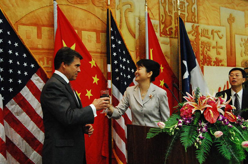 高燕平總領(lǐng)事在招待會(huì)上分別用中文和英語致辭,對(duì)佩里州長(zhǎng)以及來自德州各界的美國(guó)朋友及華裔同胞表示熱烈的歡迎。這次世博會(huì)德克薩斯州將通過世博園里的美國(guó)館,向全中國(guó)和全世界展現(xiàn)自己。高燕平表示希望通過佩里州長(zhǎng)6月份的訪華,進(jìn)一步推動(dòng)中國(guó)與德州在各領(lǐng)域的交流與合作,希望佩里州長(zhǎng)的訪問順利成功并富有成果。