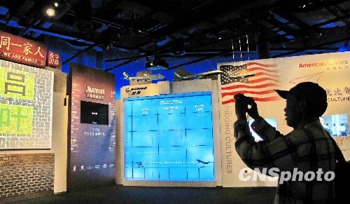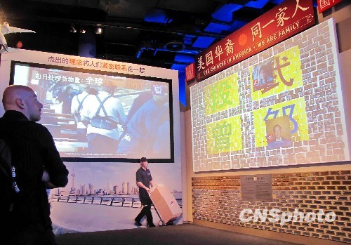 2010年5月12日,美國華裔精英組織“百人會(huì)”發(fā)起的“美國華裔——同一家人”展覽,在上海世博會(huì)美國館展出。一萬多張不同年齡、職業(yè)和出生地的美國華裔的頭像以照片、視頻的形式在 “百姓墻”上展出,全部照片按中文姓氏的編排不停切換畫面,形成一條串聯(lián)起美國華裔和中國參觀者的情感紐帶。 中新社發(fā) 井韋 攝