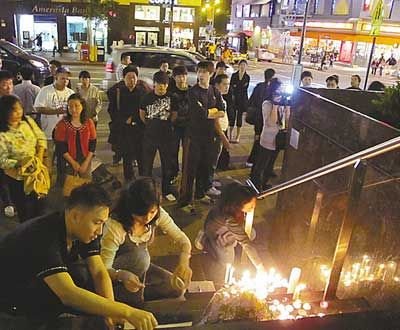 中新網5月25日電 據美國《世界日報》報道,“姚姚,一路走好”、“嚴懲罪犯,還小區平安”、“你的不幸,我心口的痛”、“小姚安息吧”,數十名紐約、康州和新州等地的網友當地時間23日晚9時許自發在紐約皇后區公立圖書館法拉盛分館前舉行燭光集會,悼念日前在法拉盛街頭遭強暴毆打致死的姚姓中國女留學生。
