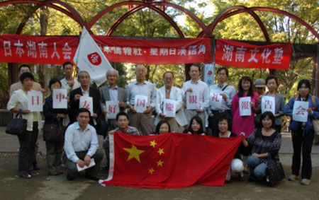 日本關東和平友好會會長、首屆日本湖南友好使者花園昭雄,日本滔天會代表宮崎黃石等日本友人,日本樂樂中國電視臺董事歐陽樂耕,日本湖南人會副會長胡芳,日本僑報社總編輯段躍中等華人代表,不僅報告了參加天安門觀禮的感動,還為大家介紹了從北京帶回來的中國60華誕慶典報紙以及國慶專題郵票、圖片等,花園昭雄還為大家介紹了他們夫婦共同創作的日文俳句《國慶節》,受到大家的好評。