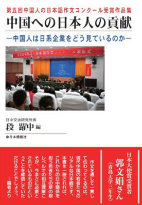由日中交流研究所主辦的中國(guó)人日語作文大賽,從2005年開始已連續(xù)舉辦五屆。每年在評(píng)出獲獎(jiǎng)?wù)叩耐瑫r(shí),還將獲獎(jiǎng)作品集結(jié)成書由日本僑報(bào)社出版。前四屆比賽的獲獎(jiǎng)作品集《對(duì)日中友好的建議》、《消除隔閡》、《超越國(guó)界》和《我所知道的日本人》出版后,在日中兩國(guó)產(chǎn)生了很好的反響,其中《消除隔閡》一書被《朝日新聞》書評(píng)委員評(píng)為日本全國(guó)2006年最值得推薦的三部“年度圖書”之一。