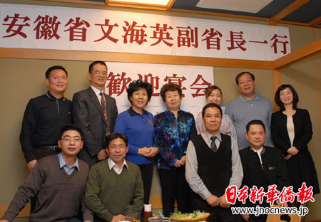 文海英副省長最后熱情洋溢地說:“在座的各位都是在日華人的精英,你們在異國他鄉奮力拼搏,取得了可觀的成績,也擁有很多回國發展的資源,希望你們為中日兩國的經濟、文化的發展和交流進一步作出努力。同時,歡迎安徽籍的在日華人同胞回到安徽發展,為家鄉的繁榮作出更大的貢獻。”