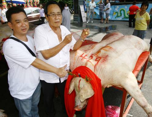 蓮清宮總務(wù)馬振輝指出,大肥豬比賽是根據(jù)中國(guó)廈門(mén)同安的傳統(tǒng)風(fēng)俗舉行,當(dāng)?shù)孛?年才舉辦一次,每次參賽生豬都高達(dá)三四百只。