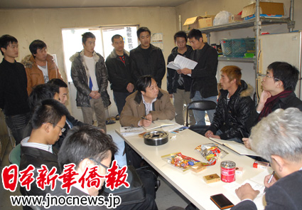 中國大使館廖宏偉領事等詳細了解10名中國實習生的工資拖欠情況。(日本新華僑報網圖片)