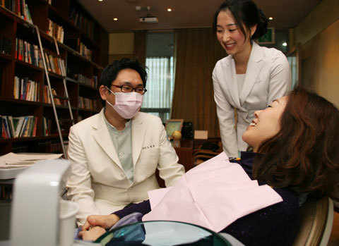 中新網(wǎng)1月7日電 據(jù)韓國(guó)《朝鮮日?qǐng)?bào)》報(bào)道,5日,韓國(guó)首爾江南區(qū)清潭洞的牙科11層。“啊~決定治療了嗎?牙的哪個(gè)部分不合您的心意?”院長(zhǎng)No Jeong-jun向身穿紫色針織T恤躺在診療臺(tái)上的日本人患者問(wèn)道。站在旁邊的院方咨詢服務(wù)師當(dāng)即做了翻譯。患者說(shuō)“我的牙歪歪斜斜地太不整齊了”。她是3日為接受牙齒貼瓷整形治療以4天日程訪問(wèn)韓國(guó)的日本主婦崎本。
