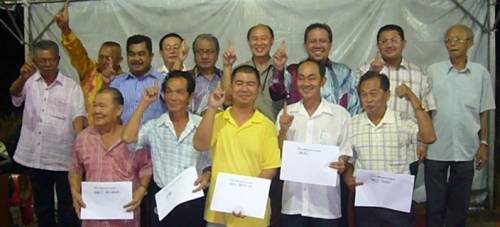 庇勞馬華區會主席蔡華輝代表房屋部移交批準文件予各村長。