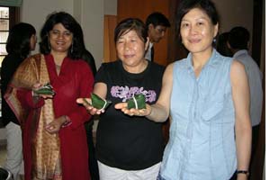中國駐孟買使館婦女組與當地婦女包粽子慶端午節
