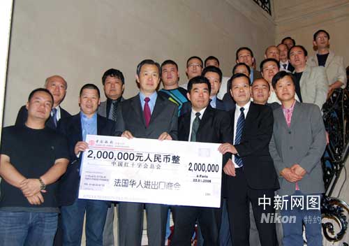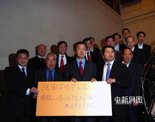 中新網(wǎng)巴黎5月23日電(吳衛(wèi)中)五月二十三日,又有多個(gè)法國(guó)華人社團(tuán)的僑胞來(lái)到中國(guó)駐法國(guó)大使館,向四川汶川地震災(zāi)區(qū)捐款。目前,旅法華僑華人的捐款總額已突破一千七百萬(wàn)元人民幣,創(chuàng)法華社會(huì)賑災(zāi)史上的一個(gè)新紀(jì)錄。中國(guó)駐法大使孔泉以“情重于山,血濃于水”贊揚(yáng)僑胞的善舉。