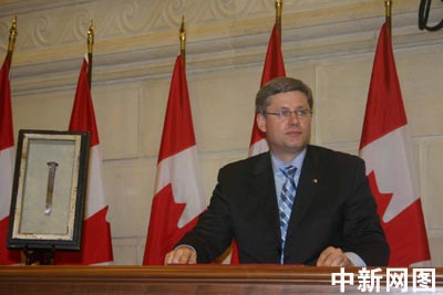 資料圖片:渥太華當地時間二零零六年六月二十二日下午三時,加拿大總理斯蒂芬·哈珀在加議會發表正式聲明,代表政府就人頭稅問題向全加華人道歉。