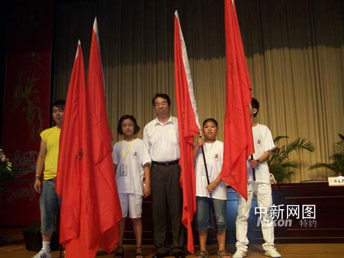 中新網(wǎng)溫州7月12日電(記者李飛云)來自十三個(gè)國家的溫州籍華裔青少年“尋根之旅”夏令營(yíng)十二日在浙江溫州開營(yíng),中國國務(wù)院僑辦副主任許又聲向營(yíng)員授隊(duì)旗,來自法國女生張小華在開營(yíng)儀式上高呼:“CHINA,很帥。”