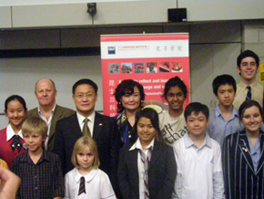 任共平在致辭時表示,很高興看到昆州學(xué)生如此踴躍地學(xué)習(xí)中文并參加中文演講大賽,祝賀獲獎?wù)呷〉玫暮贸煽儭K赋觯瑢W(xué)習(xí)中文既可以為自己增加一門語言技能,也能打開了解中國歷史和文化的窗口,建立起相互溝通、增進(jìn)中澳兩國人民友誼的橋梁。他表示,各位學(xué)生在慶祝中華人民共和國建國60周年之際參賽、獲獎,具有特殊意義,希望同學(xué)們繼續(xù)努力。