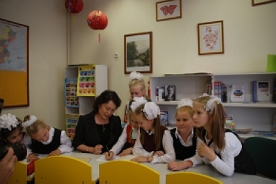 明斯克市蘇維埃區副區長希帕伊也興致勃勃地拿過話筒,她說,白俄羅斯人民希望全面深入地了解中國,學習中國,白俄羅斯社會對漢語和中國文化的興趣空前增加。明斯克市教育部門決定大力推廣漢語教學,第23中學有幸被白俄羅斯教育部選定為首批開設漢語教學的中小學之一,該校2006年9月開設漢語班以來,越來越多的學生對漢語感興趣,現有四個年級近80人在學習漢語。
