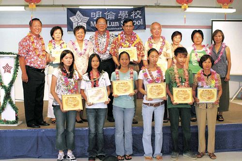 中新網(wǎng)9月21日電 據(jù)美國《星島日報》報道,美國夏威夷明倫學校近日召開頒獎大會,褒揚在第10屆世界華人學生作文大賽中獲獎的師生。5位學生和4位教師高興地從學校董事長方惠思手中接過由大賽組委會從中國寄來的得獎證書,全校師生也分享了他們的光榮。