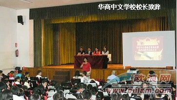華商中文學校校長黃英首先致辭,她說,祖國60周年大慶,國內人民與海外僑胞共歡顏,又逢學校開學典禮,雙喜臨門。在談到華商中文學校學生成績的時候,黃英很是欣慰和自豪,她說學校學生參加的一系列的競賽,都取得了令人滿意的成績,其中三位學生在HSK漢語考試中脫穎而出,表現相當搶眼,而在國務院僑辦組織的海外華人學子書畫展上,學校共有20名學生獲獎,從一定程度上調動了學生的熱情和積極性。黃英還特別提到了學生的個人榮譽的問題,她說學生的榮譽既屬于個人,更屬于整個海外華人學子,為中國人爭光,應該感到無比的驕傲和自豪。