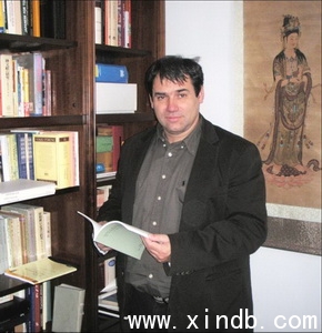 我首先問了他學習漢語的經過。他說他的學習過程很復雜。1996年在羅蘭大學東亞系和中亞系專修中文和藏文,1990年至1991年到中國北京語言文化大學進修,畢業后回到匈牙利考上了匈牙利科學院的博士班,1992年至1993年在臺灣臺北師范大學進修,主要學習中國的古代漢語,如老子、莊子 、《古文觀止》等。畢業回匈后開始讀博,并在羅蘭大學中文系、賽格德大學歷史系擔任助教工作,講授中國古代歷史,同時在法門學院教授中國佛教史和古文。1997年獲得博士學位,答辮論文是《澄觀的生涯和哲學》,之后任羅蘭大學中文系的講師,教授中文。那時系里的老教授都退休了,只有他一個人,還有一些客座教授,所以工作還是很忙的。在2000年又去了日本進修,進行佛教方面的研究。