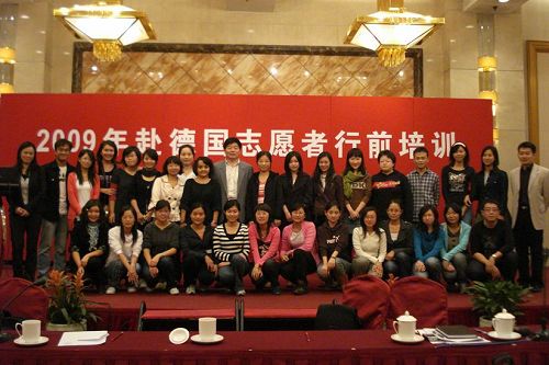 國家漢辦12日為該批志愿者組織了行前培訓并為他們送行。志愿者中心主任薛華領勉勵志愿者們繼承漢語教師志愿者兢兢業業、克己奉獻的優良作風,發揚志愿精神,高標準要求自己,做好志愿服務工作。同時也希望志愿者們牢記漢語教師志愿者的“光榮感、責任感、使命感”,進一步提高自身素質,關心國家大事,在新中國60華誕之際,抓住機遇,展示祖國的偉大成就,為中德友好交流做出貢獻。志愿者們紛紛表示,祖國的崛起與富強堅定了他們當好文化傳播民間使者的信心和決心,激勵著他們投身到漢語國際推廣事業的最前沿隊伍中去,把工作做得更好、更精彩。