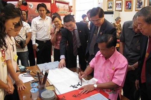 羅勇府府尹沙榮蓬∙林泰、泰國教育部民教委秘書長代表甘恒君、泰國教育部民教委漢語項(xiàng)目主任賴芝華 、羅勇府第一區(qū)教育局長通猜·滿空、泰國東部華文民校聯(lián)誼會理事會榮譽(yù)顧問梁冰、主席張步青、明滿學(xué)校校長陳松等嘉賓共同出席了當(dāng)天的剪彩儀式,并參觀了孔子課堂的圖書展覽和各個(gè)文化項(xiàng)目。