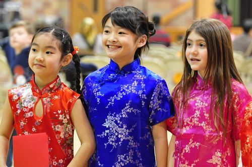 當天,金發兒童也和中國孩子一起穿上了中國旗袍,學校校長Ms.Ventola,教會主任牧師Father Sean和300多嘉賓一起參加了歡慶活動。