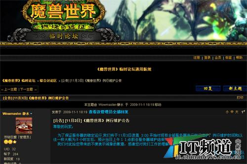 昨晚,記者在《魔獸世界》中文官網臨時論壇發現,網易已于1號晚上發布《魔獸世界》例行維護公告,公告稱,為了保證服務器的穩定運行,將于11月3日凌晨 3:00 開始對現有全部服務器進行例行維護,停機時間預計為12小時左右。同時“客服電話服務”也將暫停12小時。 這比《魔獸世界》之前的例行停機維護時間稍長。