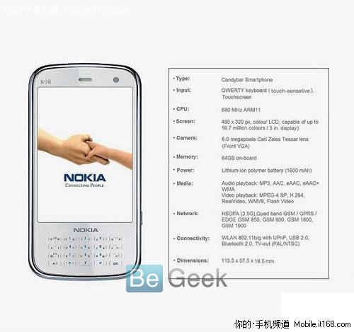 按照國外媒體的描述,諾基亞N98將會采用側滑蓋+Qwerty全鍵盤的造型設計,內置800萬像素卡爾蔡司攝像頭,機身內存高達64GB,而CPU則與N8一樣搭載的是680MHz ARM 11處理器。據悉,諾基亞N98將在今年圣誕節前后正式發布,由于N8剛剛推出不久,因此對N98感興趣的用戶還得再耐心等待一段時間。