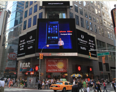 由于成為美國近一周來媒體關(guān)注的焦點,作為紐約地標(biāo)建筑的時代廣場新聞電子大屏對《Yulong Launches Coolpad N900 in China to Combat iPhone》的新聞進行了長時間的播報,中國手機新力量可能對iphone產(chǎn)生的沖擊引起了美國社會的廣泛關(guān)注,這也是國產(chǎn)手機首次亮相紐約時代廣場。