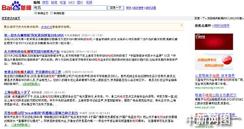而百度則將通過聚合各家新聞機構的內容獲得的流量轉化成了自己的廣告價值。在百度新聞搜索中搜索“電視”后,除了各家新聞網站關于電視的相關新聞外,還會在頁面右側看到多家電視廠商的廣告(下圖)。而通過這些廣告獲得的收入,百度顯然不會與提供內容的新聞單位分成。