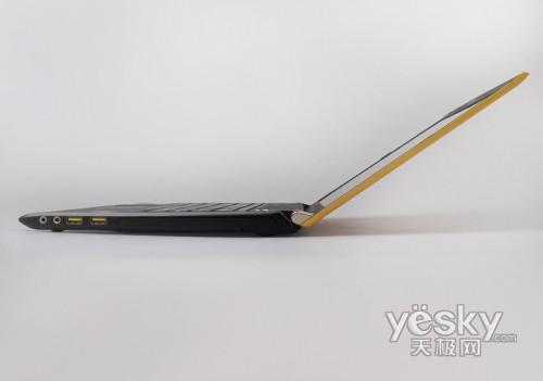 值得一提的是,同方鋒銳S30i的下沉式屏幕轉軸能夠提供高達140度的屏幕開闔角度,這在我們以往評測過的同類設計產品當中并不多見,也使得鋒銳S30i能夠適合更多環境中的使用。