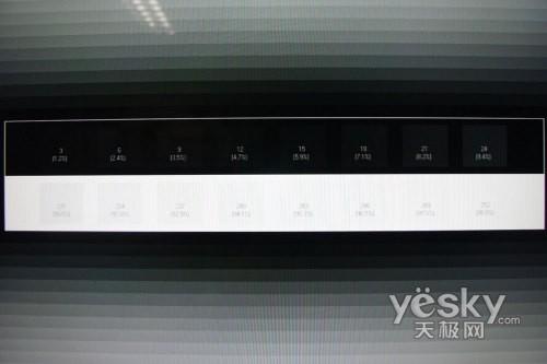 三星UA46B7000WF在灰階測試中表現還算不錯,灰階過渡自然,每個格子都能明顯的看出變化。