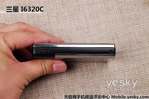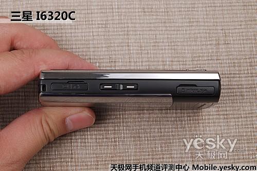三星I6320C的microSD卡槽和數據線、充電器I/O被設計在左側,I/O采用三星自主標準,音量控制鍵被設計在二者中間。而機身右側只有一顆按鍵,將兩項插槽集中在左側,目的是為該機CMMB移動電視的天線“讓位”。