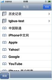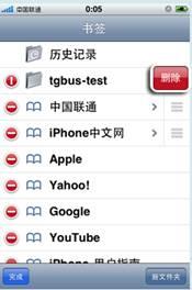 ⑵ 在書簽列表界面中,點擊屏幕左下角的“編輯”按鈕可刪除已經保存的書簽,具體操作為:點擊紅色的“-”,使其變為“|”,直接點擊“刪除”按鈕即可刪除對應的書簽