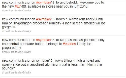 下面要說的這款手機被海外媒體命名為E7-00,盡管該機還未進入到藍牙核準測試名單,但已經被網絡上所謂的知情人士傳的神乎其神,據稱,該機將采用側滑蓋+Qwerty全鍵盤設計,屏幕尺寸高達4英寸,并采用了AMOLED材質。另外,傳聞E7-00還將內置800萬像素攝像頭,擁有256MB RAM和1GB ROM,操作系統將采用最新發布的Symbian^3。