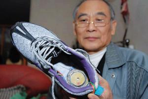 從外表上看,這雙運(yùn)動鞋很普通,可夜晚時將它穿在腳上,鞋子就會發(fā)出光線,足以照亮回家的路。更為神奇的是,這雙會發(fā)光的鞋還能為手機(jī)電池充電(上圖)。這雙發(fā)電鞋的發(fā)明者就是66歲的成都老人石才俊。