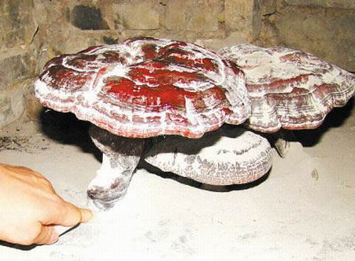 赤靈芝民間稱靈芝草。多孔菌科,是一種藥用真菌。外形頗似一株五彩蘑菇,“蘑菇蓋”呈不規(guī)則云朵形,有環(huán)紋與輻射狀的皺紋相穿插;“蓋”的下面有眾多的細(xì)密菌管孔洞;梗側(cè)生于“蓋”下,光澤如漆。每逢夏季,泰山氣溫漸高,林間相對(duì)濕度逐漸增大,陽(yáng)光散射,形成泰山靈芝迅速生長(zhǎng)的有利條件。秋末,可在柞、楓朽木樁旁采到。全株入藥,有治耳聾、利關(guān)節(jié)、保神、益精氣、堅(jiān)盤骨、療虛勞、滋補(bǔ)強(qiáng)壯等功能。(徐庶)