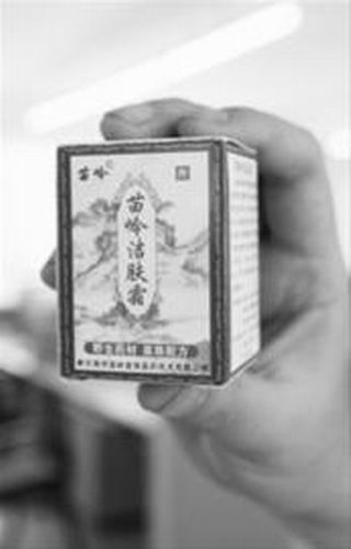 記者拿起一盒苗嶺潔膚霜,看到包裝盒上印著“苗族瑰寶、草藥奇珍”的字樣。苗嶺潔膚霜的產(chǎn)品介紹中說:“本產(chǎn)品由黔東南州苗嶺苗族醫(yī)藥技術(shù)有限公司根據(jù)千百年來苗族傳統(tǒng)配方專業(yè)研制,采用純天然野生苗族藥材,以傳統(tǒng)工藝炮制,運(yùn)用現(xiàn)代科技方法精制而成。 ”說明書標(biāo)注的主要成分是“五倍子、拳參、皂角刺等25味純天然野生藥材”。