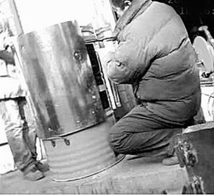 昨天(12月24日),記者來(lái)到天橋區(qū)臧家屯小區(qū)附近,一條街旁有幾家加工鐵爐子的業(yè)戶,其中一家業(yè)戶前擺著一些大鐵桶,業(yè)戶在一個(gè)藍(lán)色的大鐵桶前忙活著。記者走近一看,業(yè)戶在加工地瓜烤爐,他給藍(lán)色的大鐵桶包上半米高的白色鐵皮。“你這里加工地瓜烤爐嗎?多少錢一個(gè)?”記者問(wèn)。“300多元一個(gè)。”業(yè)戶指著正在加工的大鐵桶說(shuō),“這個(gè)烤爐已經(jīng)有人買了,你如果想要烤爐,先挑個(gè)鐵桶吧。”