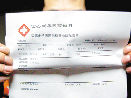 昨天上午,李女士告訴記者,自己最近小腹微微疼痛,懷疑得了婦科病。因為住在大雁塔附近,離新華醫院比較近,又聽朋友說醫院婦科有個王醫生看得還不錯,她就去醫院檢查。