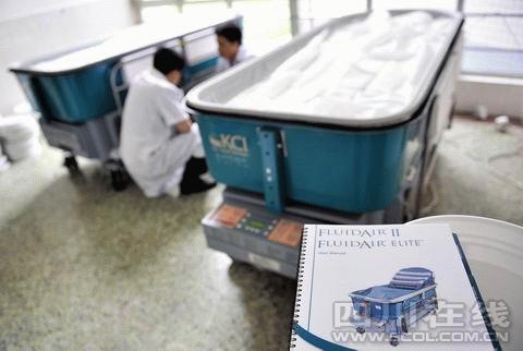昨日,3張美國(guó)原裝進(jìn)口的懸浮床運(yùn)抵成都軍區(qū)總醫(yī)院。經(jīng)廠家兩名技術(shù)人員調(diào)試了4個(gè)多小時(shí),已經(jīng)進(jìn)入凈化程序。最快,今晚兩名傷員就可以睡上這種單價(jià)近50萬(wàn)元的特種床,將極大程度減輕他們的痛苦,并有利于創(chuàng)面愈合。據(jù)了解,當(dāng)燒傷專家提出需要用懸浮床的建議后,成都軍區(qū)總醫(yī)院以最快的速度定購(gòu)了這批床。
