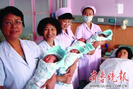 6月22日上午,臨沂一孕婦在臨沂市人民醫(yī)院剖腹產(chǎn)下四胞胎,均為男孩,體重均超過(guò)四斤,其中第一個(gè)出生的最重,體重為2750克,寶寶們健康平安。臨沂市人民醫(yī)院產(chǎn)科主任醫(yī)師張新華介紹,四胞胎的出生率是七十萬(wàn)分之一,非常罕見(jiàn),而四個(gè)孩子總體重達(dá)到19斤6兩更屬罕見(jiàn)中的罕見(jiàn)。(張濤 周升海)