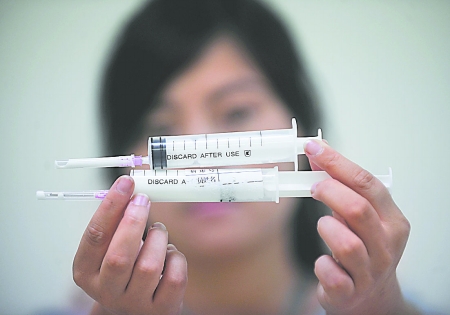 醫(yī)院里 她欲注射乳白色液體